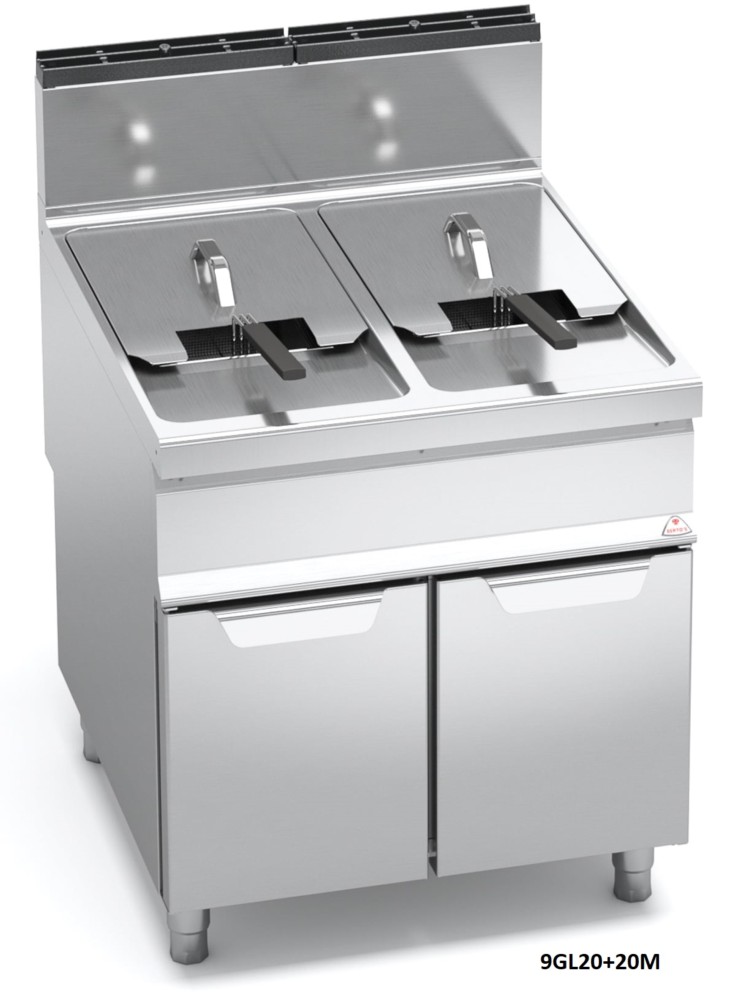 El plano, de bordes redondeados, incorpora una superficie para el apoyo de los cestos ligeramente inclinada que favorece la descarga del aceite.